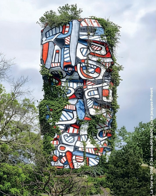 C’est autour de ces questions que les étudiants de 2e année du DN MADE (Diplôme National des Métiers d’Art et du Design) du lycée Jacques-Prévert à Boulogne-Billancourt ont développé une réflexion artistique. Leurs projets explorent des scénarios possibles pour le futur de la tour, entre création, écologie et patrimoine.