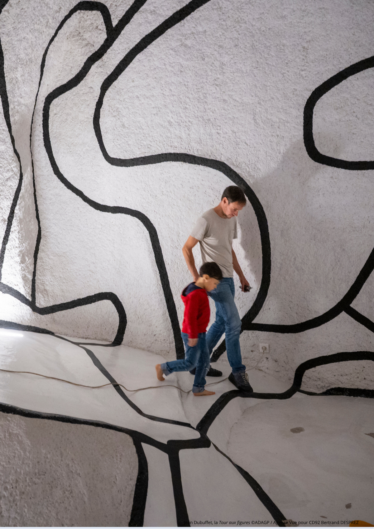 Après une ascension guidée, vous accéderez à la salle supérieure. Éclairés à la lampe torche, les formes et motifs de l’Hourloupe se dévoileront progressivement, invitant à une redécouverte poétique et immersive de l’œuvre.